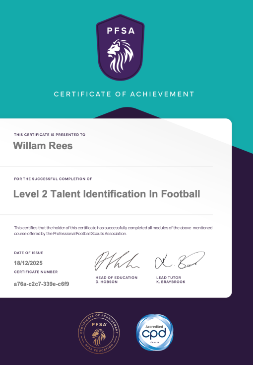 Aspiring football scout focused on building a long-term career in the football industry, with a strong passion towards talent identification and player analysis.